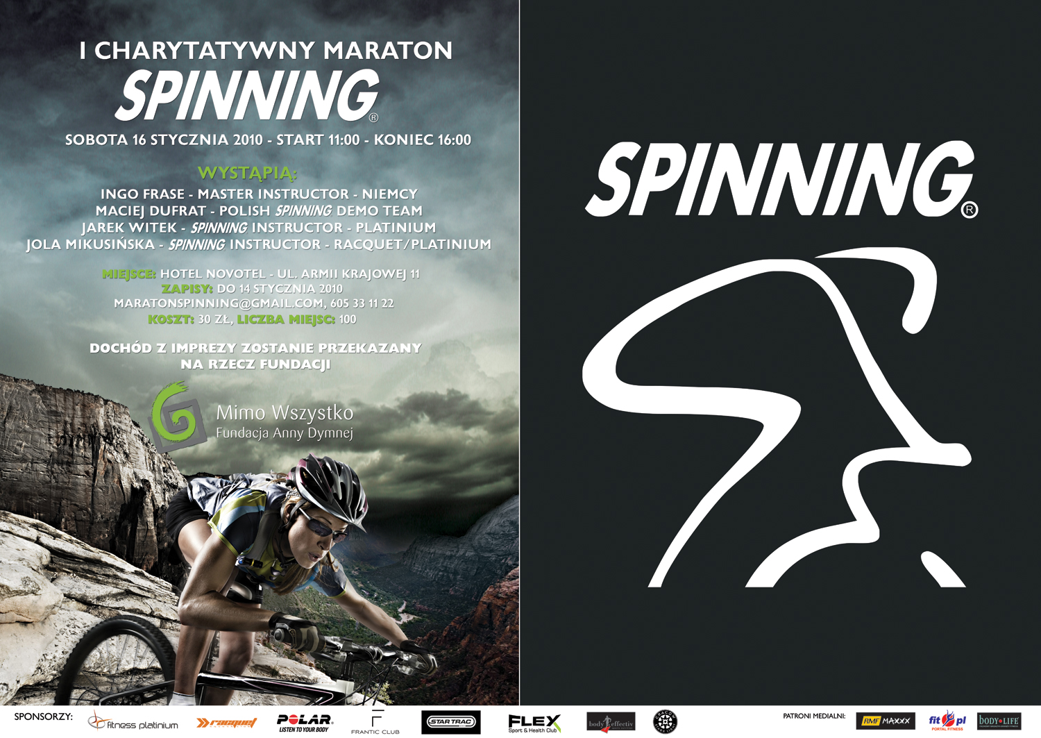 W sobotę, w hotelu Novotel, odbywa się pierwszy maraton spinningowy :) Czyli 5-godzinne kręcenie na rowerkach stacjonarnych. Całkiem, całkiem sporo :) Co by się nie zanudzić, na pewno będzie fajna muzyczka. Myslę, że może być to całkiem ciekawa impreza, a jednocześnie niezły trening :)